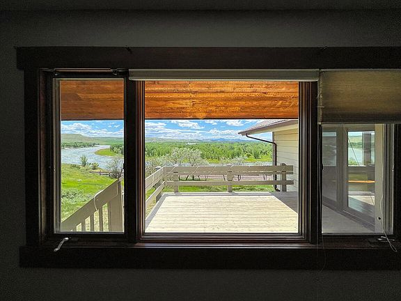 If you are looking for unsurpassed views, on the edge of town, this is the home for you! Enjoy 14.41 acres sitting on a bluff overlooking a gorgeous stretch of the Missouri River. The home is 3435' feet on two levels. You'll love the stunning real rock floor-to-ceiling fireplace in the spacious living room with high ceilings. The dining room is enormous with vaulted ceilings and views of the river and doors leading off to a deck with even more views! Also, find main bedroom, two baths and laundry on the main level. Downstairs enjoy another living/game room with a brick fireplace, two more bedrooms and a den. There are beautiful, real hardwood floors in most of the house. Seller says there is a pond at the back of the lot. Call Lynn Kenyon at 406-770-0013 or your real estate professional. Radon: Well Log Available Kitchen cabinets are real wood. High-end, wood doors throughout. Laundry leads to garage and has a sink. Abundant storage in storage room in the basement. Leaded double doors and laminate floors in the basement. Some stainless appliances. Seller also states that there is an access easement to The Missouri River. Home is quite private with its own drive. Two car garage and a shed included in the sale. Buyers to verify all representations to their own satisfaction.