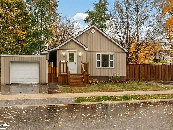 Welcome to this well cared for 2 bed 2 full bath raised bungalow! Bright and spacious open concept living room and kitchen make entertaining easy. Large kitchen sparkles with pot lights, white cupboards and upgraded lighting above island. Lots of storage in the kitchen and the island has an overhang to comfortably provide extra seating. All appliances stay! 4pc bath and convenient 2 bedrooms on the main floor with a large walk-in closet in one. The lower level boasts a 3pc bath, new carpet in an open rec room area along with laundry, utility room and more storage space. This home also has a garage and two driveways, fenced yard, two-tiered deck and breezeway from garage to home and side door as well into the home. No need to worry about the roofs! Metal roof on the home new 2023 and flat roof on the garage new 2022. Furnace 2007 and A/C 4yrs old both approximately. Midland has so much to offer and this home is located just a short walk to town for all amenities. Permitted uses for this zoning allows for duplex, home occupation and second unit.