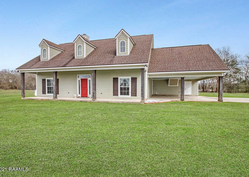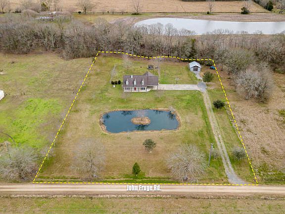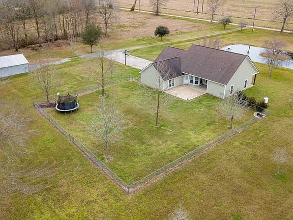 This Acadian style 1 and 1/2 story home is located on three great country acres. Facing west, enjoy sunsets on the front porch overlooking a tree lined pond. After sunset, relax on the great patio in the rear. Windows and French Doors allow for great natural lighting into Kitchen, breakfast room and living room and allow great access to the patio. Back yard is partially fenced. Great flow from kitchen to formal dining to living room. Loads of storage throughout this home. Gas stove, Appliance Garage, several pantries are only a few of the kitchen amenities. Refrigerator to remain!! Spacious laundry room conveniently located between master bedroom and kitchen with great storage.