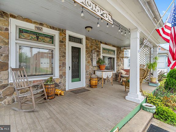 Welcome to 482 Main Street in the historic Village of Oley. This 3 bed 1.5 Bath Colonial offers a rare opportunity to move into the epicenter of the Oley Valley. The covered front porch welcomes you into the combined living and dining room. Wood floors, original woodwork and stained glass window accents are featured in this main floor living area. In the kitchen you will discover some interesting and historic architectural features. The antique tin ceiling is from Hotel Bethlehem. The blue tin wall is from a bodega in Queens NY. The center island was custom built by the owner from reclaimed wood. The first floor laundry hook-ups and half bath provide an extra level of convenience. A covered back porch just off the kitchen provides the perfect place for your morning cuppa cawfee. Upstairs there are 3 generous size bedrooms. The main bedroom contains the second floor full bath and a sunroom, which has been converted to a craft room. A walkup attic has plenty of room for storage. Outside you will find 2 patios, a yard with plenty of room to run, play, grill and chill. You won't want to miss the The Barn With Charm which is the home to RustnSuch Vintage. This barn/garage has 2 bays and enough parking for 3 cars. There is a second floor for storage as well as smaller rooms for storage and workshop. This property offers the perfect opportunity to experience everything the Oley Valley has to offer. The Village of Oley is highly walkable. Easy walks or bike rides will take you to restaurants, butcher shop, social clubs, the barber shop, the Oley Valley Fairgrounds and the American Legion walking park. Walk to the grocery store! These neighborhood amenities truly offer the walkability of an urban neighborhood in a rural setting. Easy access to local and regional commuting routes 73, 662 and 12