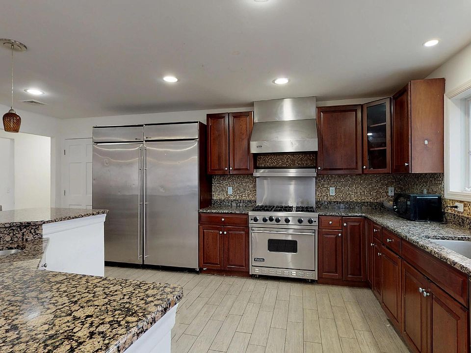 Large spacious home in desirable West Long Branch. Master bedroom is on the 2nd floor and separate from the other large bedrooms. Open floor plan, huge eat in kitchen open to gigantic family room. Sliding doors to patio area that leads to an inground pool with waterfall. Basement unfinished, but ready to be finished. Each bedroom is large. Four bathrooms throughout the home. Definitely a great home for the large growing family.