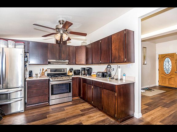 Move-in ready 4 bed/3 bath home w/ 2 master suites. Take your pick of a downstairs master suite w/ french doors leading to back patio or upstairs master retreat w/ separate area for an office/nursery/sitting room, large master bath w/ separate tub & shower, dual sinks and huge walk-in closet. Kitchen features brand new stainless steel appliances and freshly stained cabinets. New wood looking tile floor for easy maintenance! Huge family room w/ brick fireplace. Large lot w/ grassy area, dog run & pergola!