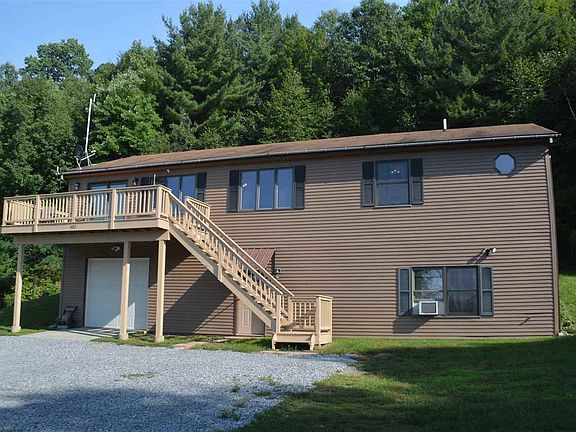 Wonderful mountain and nature view from this 3 BR, 2 bath home. Extremely energy efficient with insulated concrete form foundation, 3 zone radiant heating to include heated garage and walk out bsmnt w/ finished walls. MBR w/ full bath and jacuzzi tub. Open kitchen and dining room layout with frenchwood door to deck over looking mountains. Detached garage with separate heating system. 1/2 mile to Northern Washington County Snowmobile Trails. 5 minutes to Willard Mountain. Deer and turkey hunting on property.