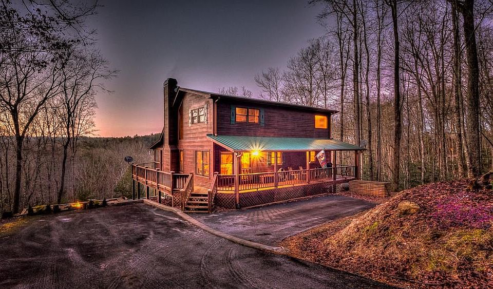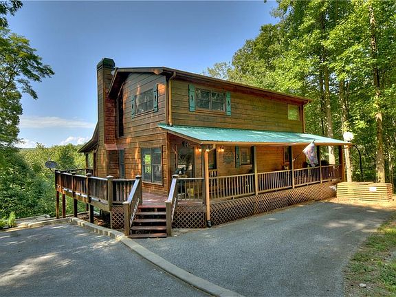 Nestled high on a serene hillside in the coveted Aska Adventure Area, Resting Bear Retreat is a fully furnished, turnkey mountain escape with breathtaking long-range views from every angle. This 3-bedroom + loft + bunk area cabin combines laid-back comfort with professional decor, offering the perfect balance of rustic charm and modern luxury. Step inside and be welcomed by soaring vaulted ceilings, warm hardwood floors, oversized windows that flood the space with natural light, and custom log stair rails leading to a cozy sleeping loft. The great room features a striking stone fireplace and french doors that open to expansive wraparound decks, designed to maximize the view and fresh mountain air. The terrace level is made for entertaining, with a full game room including a pool table and a second gas fireplace. Step outside to enjoy the lower deck's porch swing or relax in the hot tub while soaking in the peaceful surroundings. The upper deck features a screened-in porch with ample seating, a charcoal grill, and the backyard boasts a fire pit for evenings under the stars. Set on 1.7 private acres with a long driveway and generous guest parking, this cabin offers plenty of room to gather, unwind, and explore. With 3 bedrooms, an open loft sleeping area, and additional bunks on the terrace level, there's space for everyone. A proven short-term rental success, Resting Bear Retreat is being sold fully furnished - a true turnkey investment or a ready-to-enjoy personal getaway in the Blue Ridge mountains.