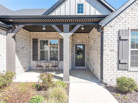 NEW ON THE MARKET! This 4 bedroom 3 bath home near shopping & eateries w/ convenient access to Hwy 412! This all brick home features a landscaped lawn & covered front porch perfect for having coffee in the morning! Step inside you find high vaulted ceilings w/ beams, wood floors, a gas log fireplace, & open concept perfect for entertaining guests & family! You'll be the perfect host when you cook in your creamy white & spacious kitchen with SS appliances, recessed lighting, crown molding, wood-look tile, a separate cooktop, double oven, farmhouse sink, abundant cabinetry, bar top counter space, & eat-in kitchen nook! Hide away in your private master suite or relax in your master spa with tiled walk-in shower, double sinks, whirlpool tub, wood-look tile, & crown molding! BONUS! An additional spacious bedroom perfect for a game room! Plus 2 additional bedrooms & 2 more full baths! Step onto the covered back patio to enjoy warm summer nights or on the extended patio in your private & fully fenced backyard! Act quick!