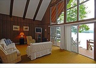 Brand New Dock And Deck!This A-Frame Cottage Is Priced To Sell. Needs Updating But It Would Be Impressive With A Little Cosmetic Work. Great Location With Lots of Sun And Protection From Winds. Watch The Mount Go By..... Lots of Room For Friends And Family To Stay. Three Large Bedrooms, Lots of Closets And A Sleeping Loft! Spacious Bathroom With A Shower. Flat Lot, Has A Small Walk In Beach And An Outside Shower. A Brick Fireplace And A Wall of Windows Make This Cottage Cozy And Bright. A Little Sweat Equity Would Go A Long Way. Come See This Before It Is Gone! There Is An Opportunity To Purchase With A Mainland Dock See Mls 4161379.