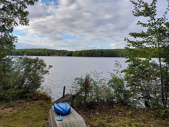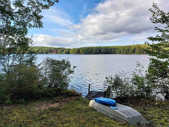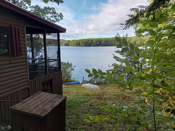 Searching for a waterfront getaway? This cozy 2-bedroom cabin on Stone Pond in Marlborough is truly a special property and a rare find. You will have plenty of privacy with the half acre lot and 250 feet of water front on this 79-acre, sparkling trout pond. Enjoy boating, swimming, fishing or just relaxing by the water’s edge. Step inside and you will find an updated kitchen with breakfast bar seating, a large pantry/utility room with laundry hook-up, a cozy living room featuring a stone fireplace, a huge master bedroom with plentiful closet space and built-in cabinetry, a second bedroom and a full bath. The heart of the cabin is the enclosed screen porch which overlooks the pond with westerly views. It is the perfect spot to be from your morning coffee right until sunset. If you love nature, tranquility and privacy this is the cabin for you. Plus, this property offers modern conveniences such as high speed internet and cable, and it comes furnished with all you need to start making special memories with friends and family!