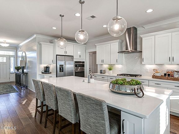 Located in the highly desirable Scotts Hill area, Scotts Hill Village is a natural gas community with easy access to I40 and 17N for an easy commute to the area beaches and all of the best shopping and dining. The Webster is a five bedroom, four and one half bath two-story home. A home office with french doors is located off the entry. This open plan features a large kitchen with center island, eat-in area and family room with coffered ceilings. There is a large entry off of the garage that features bench and cubbies and a walk-in pantry as it's just outside of the kitchen. A guest bedroom with private bath is located on the first floor. Three secondary bedrooms with walk-in closets and two full baths are located upstairs. A large bonus room and laundry room are also located upstairs. The spacious primary Bathroom features a linen closet, walk-in tile shower a water closet and dual closets. Additional features in this home include a gourmet kitchen with gas range and wall mounted hood, white farmhouse sink, and quartz counter-tops in kitchen. Home is under construction. Photos are of a similar home. Colors and finishes WILL vary.