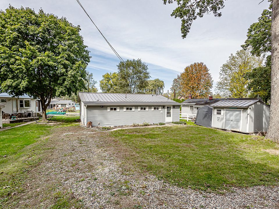 Enjoy lakefront living with this cozy 2-bedroom, 2-bath home featuring 60 feet of channel frontage and a private dock, offering direct access to the all-sports Rose Lake. Recently updated with a new metal roof (2023), an 89-foot well (2023), and a freshly pumped septic (2023), this home is move-in ready. The open-concept kitchen and living space flow seamlessly into a bright, airy 3-season room, perfect for soaking up natural light and enjoying the view year-round. Do not forget the spacious storage shed. As part of the association, you'll have access to fantastic amenities, including a playground, beach area and boat launch. The dock is also included in the sale so you can start enjoying the lake right away. Call today for a personal showing!
