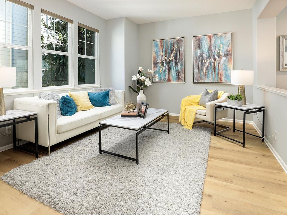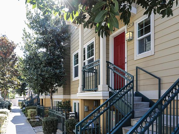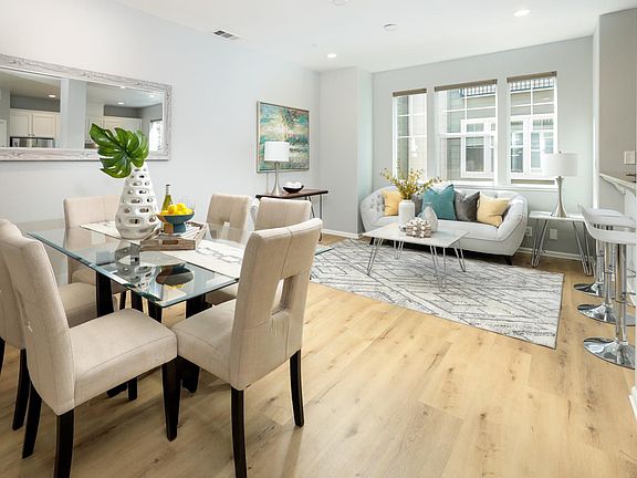 Beautiful Craftsman inspired 3 Bedroom/2.5 Bath townhome in desirable Aster Place! Centralized location, close to Cal-Train, expressways, major corporations, shopping and resturants. Bright & open main floor plan with formal entry & living room. Good natural lighting with high ceilings. New LVP hardwood style flooring on the main level, with newer carpets on upper bedroom level. Kitchen opens to the family room and features granite counters, breakfast bar, walk-in pantry, and new stainless steel appliances. Freshly painted with contemporary colors & some recessed lighting throughout. Guest powder room on the main level. Large primary suite with walk-in closet, dual vanities & bathtub. The 2nd & 3rd bedrooms are all on the same upper level with a built-in linens storage cabinet in the hallway area. Central A/C. Washer/Dryer included. Spacious bonus room downstairs great for work at home office, gym, and guest room. Attached 2 car side by side garage. Low HOA includes garbage.