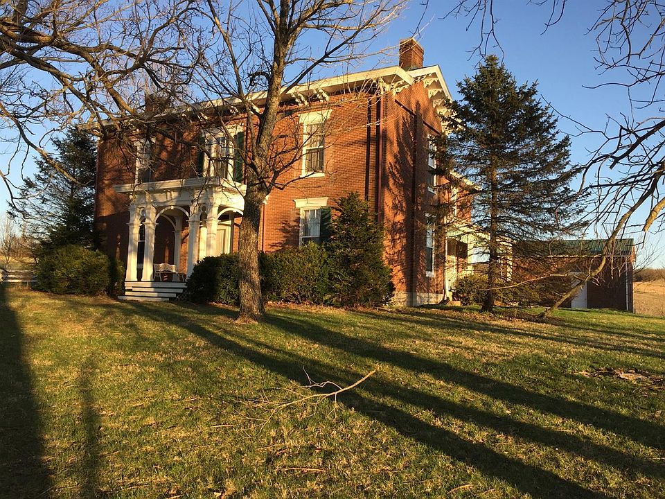 Priced below appraisal!!! This 90 Acre farm with precivil war historical home sitting on top of a hill offers a 2 story solid brick home built in 1855. Placement of the home allows panoramic views of farm with abundance of wildlife for your enjoyment. Home has been carefully maintained to retain the significant beauty of the era. Massive woodwork, orig. wooden floors, 7 fireplaces/ornate mantles, 11-12 ft. ceilings, 5 bedrooms(master first level), Chickering Grand Square Piano stays with home. 2 baths, brick meat house with loft, old wood frame carriage house is used for storage with attached heated workshop. There is a one car detached frame garage. Two older barns, one tobacco and one stock. Farm contains 90 acres with the back portion wooded for great hunting! Within one hour of Greater Cincinnati and Lexington Bluegrass airports.