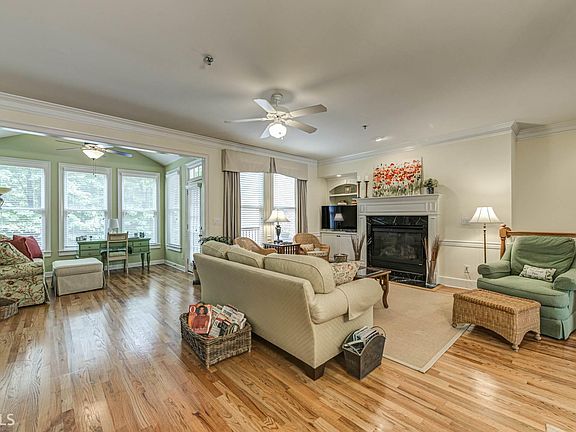 Beautiful floor plan with open concept for today's lifestyles. Cozy sunroom for additional "curl up with your book" space. Luscious primary bedroom offering a perfect retreat from a busy day. Secondary bedroom is oversized and makes a great roommate situation or comfort for the occasional guest Lower level has flex space that can be another bedroom away from it all or the office or exercise room - owner's choice. Located within Vinings Estates, The Ridge complex is tucked away with its own swimming pool. A community within a community. Easy access to 285 and expressway to Atlanta Airport, Downtown, Buckhead, Midtown or points north. Take life easy here, but still have all the comforts. This unit has barely been lived in.
