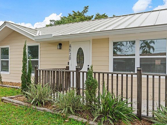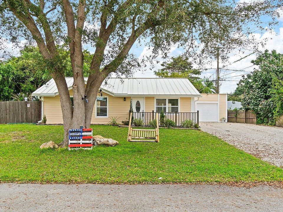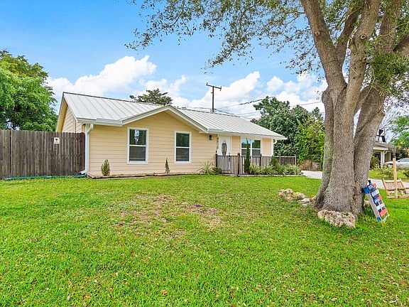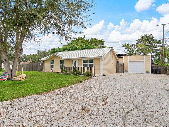 WELCOME HOME! This charming 3 bedroom, 1.5 bath home with detached garage/shop on oversized corner lot with plenty of room for a pool is located in the much desired, family friendly Tropical Country Estates neighborhood. NO HOA!!!! Boasting a BRAND NEW METAL ROOF, FRESHLY painted exterior, tongue & groove cypress ceiling in master bedroom, tongue & groove pine ceilings in bedrooms 2 & 3, shiplap throughout living area, hand built interior doors, A/C 2016 works perfectly and just serviced, water heater 2016, kitchen partially remodeled in 2021, dishwasher 2022, Refrigerator 2023, beautiful limestone front open porch and back yard open patio. TWO entrances to this property make it convenient to store a boat, RV, trailers. THIS HOME WILL NOT LAST LONG! Swing set/Trampoline DO NOT convey.