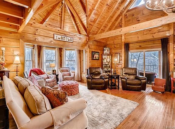 You will love this gorgeous WATERFRONT log home located on 5 acres. This 3 bedroom, 3 full, and 1 half bath home features STUNNING wood floors and beautiful log walls. Wake up each morning to the inspiring water views of Lake Wylie with multiple accesses and top and bottom wrap around porches to enjoy the view. Fantastic finished BASEMENT with tons of uses including additional family room with addition bedroom and bath. Great outdoor space with dock, boat slip, and additional storage under home. This charming home also features the master bedroom on main level with large master bathroom. Welcome home! You will not be disappointed!