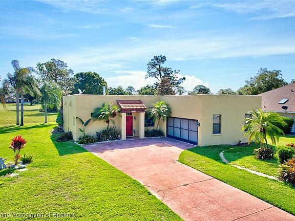 GOLF COURSE HOME IN SUN N LAKE OF SEBRING! You'll fall in love with this 3 bedroom, 2 bath Southwestern Style home. With authentic Terra Cotta tile throughout the main rooms and a real wood burning fireplace in the living room, you will think you're back in the wild west. The kitchen comes with hard surface counter tops and solid wood cabinets and is connected to a spacious breakfast nook with a great view of hole #14 on the Deer Run course. The large Primary bedroom has two walk in closets and the adjoining Primary bathroom has a walk in shower and separate large tub along with a double vanity. We saved the best for last: a HUGE screened in Lanai to sit and watch the golfers go by while enjoying your favorite beverage. You'll not only see golfers but several kinds of wildlife out your back door. The home includes a large 2 car garage and; THE HOME IS BEING SOLD COMPLETLY FURNISHED! AND NO HOA FEES. Take advantage of all the amenities Sun n Lake has to offer; 2 championship golf courses, tennis and pickleball courts, municipal pool, fitness center, nature trails, and more (some fees may apply)
