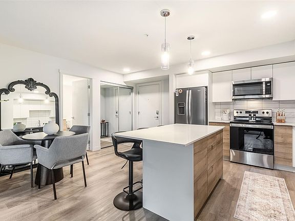 Kitchen features quartz countersSpacious islandTile backsplashTriple-pane windows