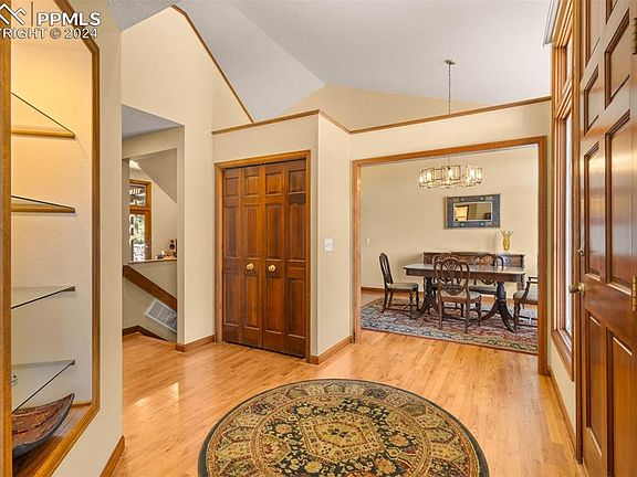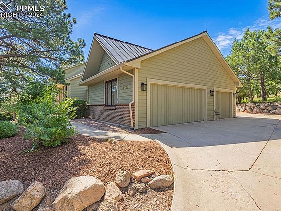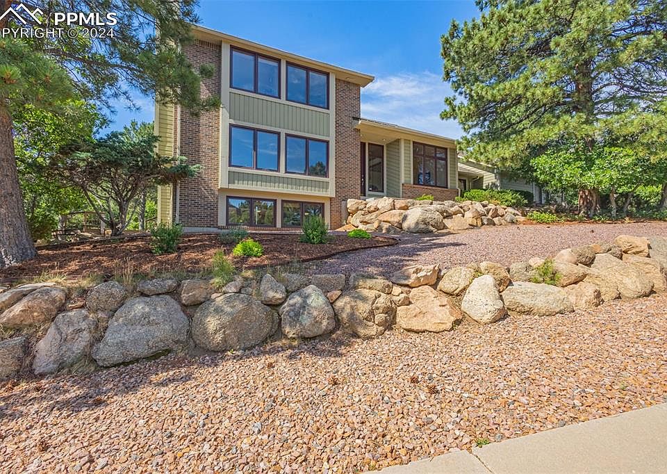 Discover serenity in this well- maintained Cheyenne Mountain retreat, complete with a secluded backyard oasis and a sauna! This 4-bedroom ranch home offers a wealth of amenities. The master suite features a 5-piece bathroom and a spacious walk-in closet. Enjoy seamless indoor-outdoor living with expansive walk-out access throughout the backside of the home via large patio doors. The gourmet gas kitchen, complete with ample counter space, is ideal for preparing family meals and connects effortlessly to both the kitchen nook and formal dining room. A great room welcomes you with high vaulted ceilings and abundant natural light, while the living room offers great views, a fireplace as well as electric blinds for added comfort and privacy. Upstairs, three nice sized bedrooms await, one featuring its own vanity with sink and all but one equipped with blackout blinds for restful nights even during summer months. The basement provides an office, a built-in sauna for luxurious in-house spa experiences, a large utility room with built-in cabinets offering ample space for hobbies as well as a large open living area perfect for an exercise room, additional living room space with a fireplace and a bathroom with shower. Outdoors, the home's unique appeal continues with expansive patios on the back and south sides, creating inviting spaces for relaxing evenings. The side deck is prewired for a hot tub, offering further relaxation possibilities. A preservative easement at the rear ensures additional natural space and privacy, with the assurance that no future development will disturb the tranquility. Recent upgrades include fresh paint throughout most of the home, new carpet in the master bedroom, and a new furnace installed in 2024. This exceptional property combines luxurious living with unmatched privacy and is truly a must-see! Schedule your showing today!