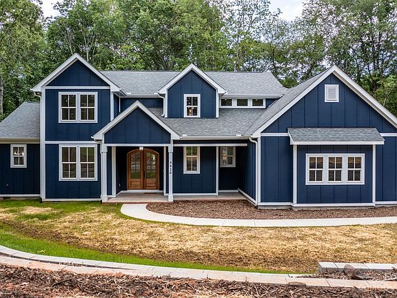 NEW CONSTRUCTION! This gorgeous, stately property was built to impress with upgrades galore! From the moment you step onto the front porch, you'll appreciate the design detail - Pine ceiling & arched Mahogany French Front Doors. Once inside, a grand foyer leads to an open concept entertaining space. The GR has cathedral ceilings, gas log fp w/granite surround & double sliding door that leads to a covered back porch. Upscale kitchen offers a huge island w/seating space, white/blue marble countertops w/glass subway tile backsplash, deep farm sink, pantry, coffee/wet bar & ss appliances. The primary suite is simply stunning- tiled, glassed-in shower with 6 jets & rain shower head, stand-alone soaking tub, vanity w/exotic granite countertops & huge closet w/built-ins. Laundry on main & upper levels! Striking staircase & catwalk! 1/2 Bath & Built-In Hall Tree w/Quartz bench at garage entry! Join LHCC to enjoy fine dining, fitness center & 27-hole golf course right in the neighborhood!