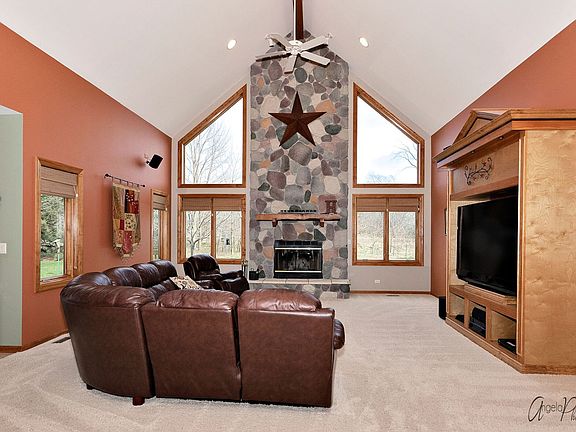 WOW!!! See this custom 3898 Sq. Ft. ranch home in Johnsburg school district that sits on 1 acre in beautiful Oakview Estates in Ringwood. Right when you walk in you will be greeted by a beautiful living room with 22 foot vaulted ceilings. Enjoy spending time and making memories around the floor to ceiling stone fireplace located in the living room. The spacious kitchen has a breakfast bar and island, nice hickory cabinets with a large 5x8' pantry. The 1012 sq. ft. bonus room above the garage can make for a perfect 4th bedroom with a FULL bathroom. The unfinished basement is 2886 sq.ft, with a roughed in bathroom for when you are ready to finish it. The garage has plenty of room for your toys and parking w/ 12 foot ceilings with a workbench, and stairway to get down to the basement. Enjoy spending time on the brand new deck and enjoy the mature oak and walnut trees!! Plenty of options for a 4th bedroom. Don't miss out on this opportunity to own this custom ranch home!!