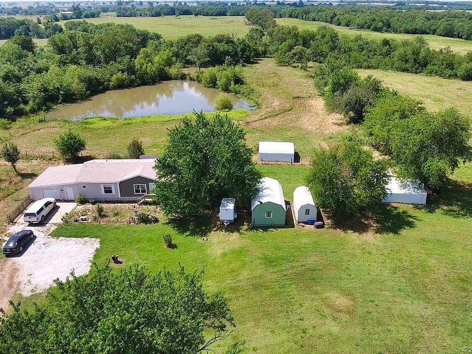 3/2/1 mobile home located on 160 acres. Master has separate walk-in tub and shower. Home has nearly brand new roof - is neat and clean and shows well. Garage has workshop area and lots of storage. Nice view of large pond (6 total) from rear deck. fenced and cross fenced. Cattle pen, chicken coop. 2 double carports, lean to, 2 storage buildings. Large storage building is set up as a cabin with 3/4 bath and W&D hookups.. Appr. 30% wooded, rest is open pasture. Gazebo. House and 10 acres - $139,900.