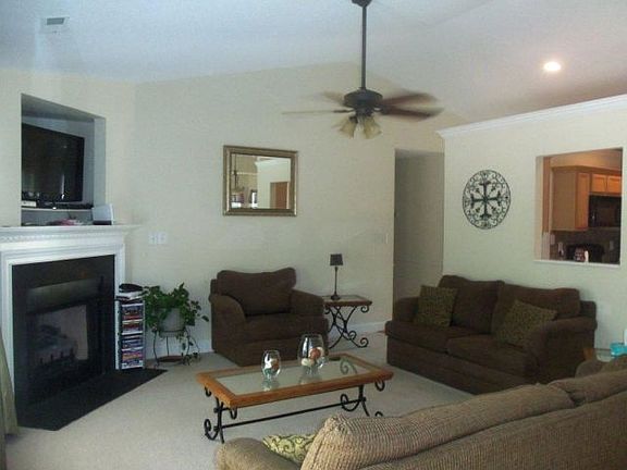 Gorgeous home with open floor plan! Vaulted ceiling in living room, with ceiling fan. Recently remodeled kitchen and bathrooms. Spacious kitchen with ceramic tile and tile back splash. Bay window in dining room. Garden tub in master bath with double sink and separate shower. Nicely landscaped yard with beautiful stamped concrete patio and a gazebo.