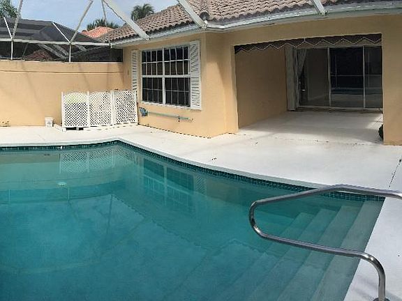 This beautiful Divosta 2/2 pool Villa is the perfect setting for your Florida lifestyle. This home features numerous upgrades including gorgeous granite kitchen counters with plenty of cabinet space and designer touches throughout this home Newly updated walk-in shower in master bath, a large covered and screened lanai with hurricane shutters, heated pool with walk-in steps is perfect for entertaining and an extra side yard for added privacy. Accordion storm shutters on rear sliders with clear hurricane panels for remaining windows. You ll feel safe, secure and relaxed in your little piece of paradise set in the gated upscale community of Island Walk. Divosta is well known for the quality of their poured concrete construction, close to beaches, schools, medical, shopping and dining. There is a $100 application fee. Tenant is responsible for water, electric and pool maintenance