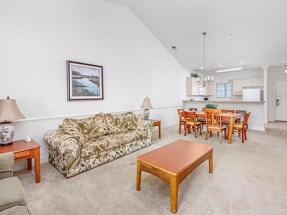 Very nice top floor 2BR/2BA condo at centrally located Magnolia Pointe in Myrtle Beach on the Myrtlewood golf course. Open floorplan in the living room/dining room/kitchen area and great views of the pond and pool out back. Elevator in the building makes accessing the condo very easy. The primary bedroom is large, has a bay window seating area and a walk in closet, and the bath is large, with double vanities, and tub/shower combo and tile floors. The kitchen is large, with plenty of cabinets and counter space and a breakfast bar. The living room features a high vaulted ceiling, carpeted floor, plenty of space, and opens onto the large balcony. The guest bath has a shower and contains the washer/dryer closet. Magnolia Pointe located close to Broadway at the Beach, the Myrtle Grande Mall, plenty of restaurants, golf courses, and the Myrtle Beach Airport. This would make a great primary or second home or rental property.