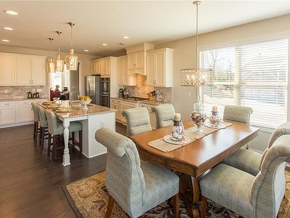 - Kitchen Features: Breakfast Bar, Cabinets Stain, Eat-in Kitchen, View to Family Room, Kitchen Island, Pantry Walk-In, Solid Surface Counters