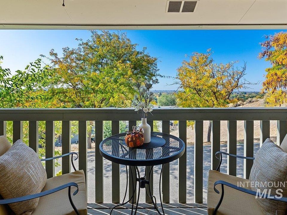 Welcome to Your new Townhome or Investment Property, offering Beautiful Boise Foothills Views from the charming upper-level balcony including ; kitchen, and spacious open-concept dining/living area. The kitchen features stylish tile and a convenient breakfast bar, with newer appliances .The primary bedroom boasts a wall of custom closets, a large window overlooking the deck and hillside. Enjoy the ideal work-from-home setup with a dedicated office featuring glass French doors leading to a large, private, north-facing deck—perfect for relaxing or entertaining. Guests or family members will love the oversized bedroom and private bath on the entry level. Close to walking and biking paths. Ridges to Rivers trails are just around the corner and just minutes from downtown Boise. The HOA allows Short Term Rentals, also covers the roof, exterior siding, deck railings, and grounds, making this the perfect low-maintenance living option for your lifestyle. Perfect timing for Holiday Rental.