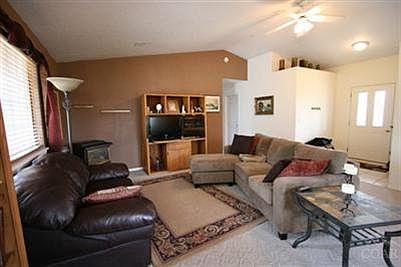 Custom built home on 2 1/4 acres. Country feel yet only minutes to town. 30x36 shop w/12' ceilings & two 10' doors & a 10x12 storage shed w/power. Open living room & dining area, slab granite countertops w/tile backsplash & eating counter in the kitchen, lots of cabinetry, propane FP in the living room. Huge concrete patio in the backyard, great for entertaining. Master bedroom features double sink vanity, walk in closet, sitting area & access to the back patio. Finished heated garage, fenced & landscaped.