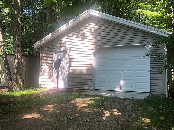 No deferred maintenance here, well maintained and ready for new owners. 3 Bedrooms, 2 Bathrooms, large kitchen with plenty of cabinetry. Main floor laundry, washer/dryer included. Full unfinished basement with an egress window. Attached 2 car garage with a concrete apron and a insulated/heated detached 22'x28' pole barn. Relax on the 22'x 8' covered front deck, 10'x8' back deck through the sliding door at dining/kitchen area. Enjoy the wildlife views on the heavily wooded 1 acre lot. A garden shed is included with the sale. Forced air heat, central air conditioning. Metal roof on both buildings installed in 2016. Association amenities include indoor pool, private/stocked lakes, camp ground for guests, clubhouse/lounge/game room, tennis and basketball courts.