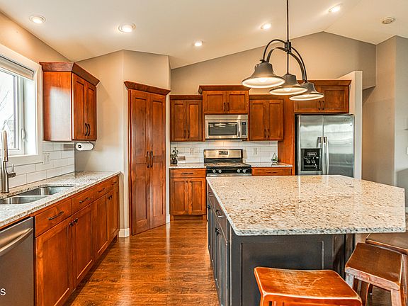 MUST SEE!! Your oasis awaits you outside with a large .38-acre lot, featuring a cozy firepit area, a newly stained deck for outdoor dining and lounging, lush greenspace (once the snow melts), and convenient garden boxes for your gardening passion. Located on a quiet street with no through traffic, enjoy peace and privacy in your tranquil surroundings. This stunning 5-bedroom.3-bathroom property boasts a chef's paradise kitchen with a gas stove, stainless steel appliances, granite countertops, and a sleek backsplash. Adjacent to the kitchen is a spacious dining area, perfect for hosting gatherings. The open living room creates an inviting atmosphere for relaxation and socializing, seamlessly flowing from the kitchen and dining area. Storage is abundant in the garage with access to the garage attic with shelving already in place. And you will appreciate the lockers near the entrance to the house offering tons of space to store your things. The basement adds even more value with a spacious family room, complete with a cozy fireplace and wall to wall built-in desk for work or crafts! Discover unique character elements as you walk through the home such as barn doors, hooks and iron/wood shelving. All add charm and personality to every room. Check it out TODAY!