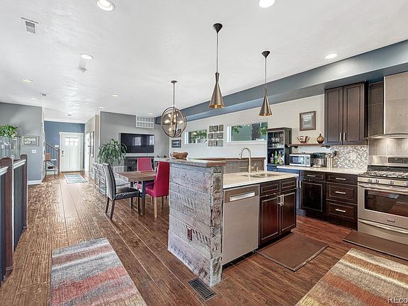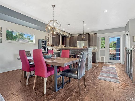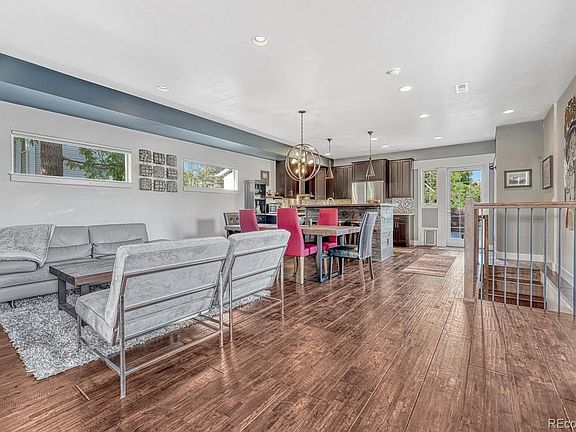 Discover the perfect blend of modern luxury and outdoor serenity in this fully rebuilt and meticulously maintained 4-bedroom, 3-bathroom home. Inside you are greeted by soaring 9-foot ceilings and expansive windows that create a bright, airy ambiance. The open-concept main living area seamlessly integrates the dining room, living room, and kitchen, ideal for entertaining and family gatherings. The state-of-the-art kitchen features a stunning beetle-kill wood center island, high-end soft-close cabinets, ample counter space, and top-of-the-line stainless appliances making meal prep a joy. The main floor also hosts one of the four bedrooms, adorned with double French doors, making it perfect for a home office. Upstairs, you'll find three spacious bedrooms and two luxurious bathrooms. Additional conveniences include a secondary laundry hookup and peek-a-boo mountain views to start your day inspired. The partially finished basement offers a versatile bonus room, ideal for a home office, hobby space, or additional storage. Your Backyard Oasis Awaits as you relish the Colorado sunshine in the expansive, professionally landscaped backyard. This fully fenced sanctuary boasts lush flowering trees, berries, and vibrant flowers. A large natural stone water feature adds a touch of tranquility, while raised garden beds let you cultivate fresh produce. The programmable sprinkler system ensures the yard stays lush and nearly maintenance-free. High-end landscape lighting enhances the garden's beauty, even after sunset. Plenty of parking with the oversized 2 car garage and additional off street parking. Prime Location: Just a 10-minute drive from downtown, Willis Case Golf Course and a few blocks from the vibrant Tennyson Street, with its array of restaurants, shops, and entertainment options. Click on this link for a virtual tour https://gaston-photography.view.property/2251069?idx=1 and schedule a showing today to experience its unique charm for yourself!