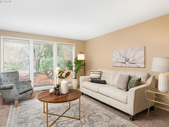 One level in desirable Reed neighborhood. Spacious living room with floor to ceiling windows leads to dining room with fireplace. Comfortable kitchen with updated white cabinets, wood-like laminate floors and roomy eating area with slider to covered patio and private yard. Good-size master with en-suite bath. Dedicated laundry room w sink and abundant storage, plus rare 2 car attached garage. New roof in 2011. Easy walk to Marigold Coffee and Bird + Bear restaurant; bike score 89, very bikeable. [Home Energy Score = 4. HES Report at https://rpt.greenbuildingregistry.com/hes/OR10187814]