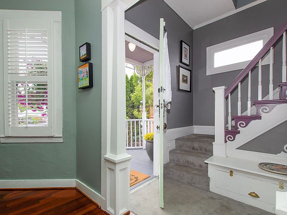 Rare find! Charming Victorian w/DETACHED 480sf STUDIO w/vaulted ceiling & 220 vlt power is the PERFECT WORK SPACE OR ADU (poten). Home features 14ft ceilings, bay windows in living/dining rm, shutters, cherry hardwd flrs, crown molding & whimsical kitchen that leads to Lrg back porch.Both beds are up along w/MasterSuite deck.Outside enjoy PRIVATE easy-care courtyrds, raised flower beds & 3 out buildings, endless possibilities, must see! [Home Energy Score = 1. HES Report at https://rpt.greenbuildingregistry.com/hes/OR10090479]