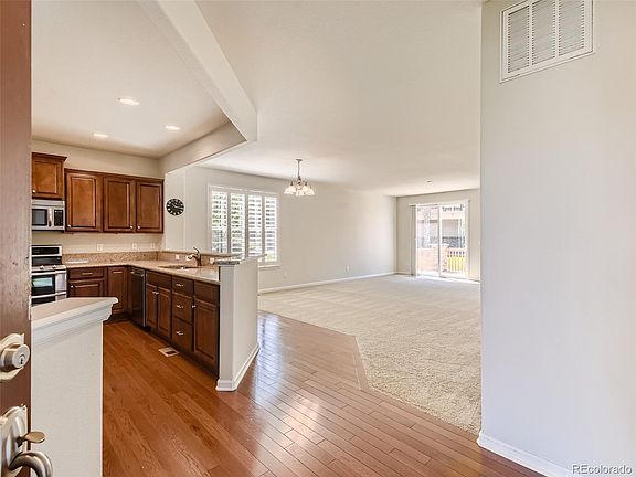 Fantastic Eldora Model located in the highly sought after Anthem Ranch neighborhood. 1670 sq ft on the main level with 2 bedrooms, 2 baths and an office with french doors. Open floorpan with eat in kitchen, breakfast area and separate dining room. Large living room with cozy gas fireplace, laundry room with washer, dryer and coat closet. Lots of cabinets with rollouts extra laundry room closet. Tankless hot water heater, gas stove with double oven and new dishwasher. The composite deck faces south with mountain views to the west. Perfect for Colorado Evenings and Summer Cool nights. 2 linen closets and coat closet close to entry way front door. Home has the mountain exterior with stone facade and extra details on the front. 2 car garage facing a quiet cul de sac and adjacent to Anthems Large trail system with over 48 miles of trails. 30,000 sq ft Aspen Lodge with full fitness center, indoor/outdoor pool and hot tubs, indoor walking track, dance studio and fitness classes, billiard room and library. Over 130 clubs and outdoor concerts in the summer and indoor music events throughout the year. This one won’t last!
