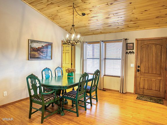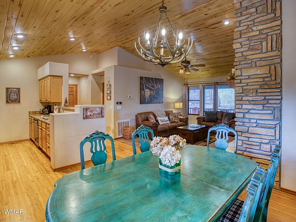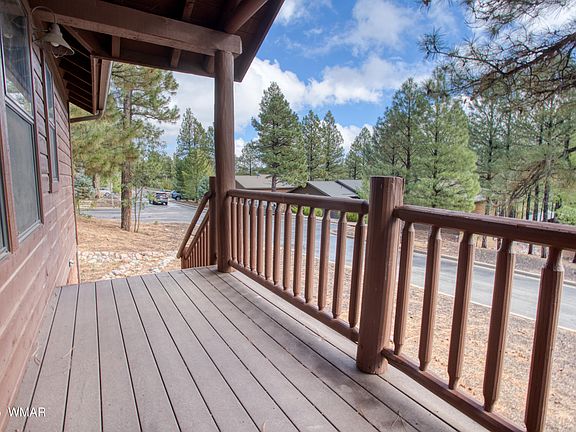 You'll fall in love with this adorable 2-bedroom, 2-bath cabin nestled among the tall pines in the highly desirable Bison Ridge neighborhood. This cozy retreat offers a split floor plan with spacious bedrooms and inviting living spaces perfect for relaxation or entertaining. Step inside to a beautiful great room featuring vaulted T & G ceilings and a stacked-stone gas fireplace that creates a warm and welcoming atmosphere. The primary suite includes double vanities, a private shower/water closet, and direct access to the extended covered back deck, the perfect spot to unwind or enjoy the sights and sounds of nature. The guest bedroom also opens to the deck, offering guests their own private retreat. HOA takes care of the landscaping and snow removal. As an added bonus there is private access to the National forest! Enjoy the serenity of mountain living while being close to everything; golf courses, hiking trails, Show Low Lake, shopping, restaurants, and even Sunrise Ski Resort for winter fun. This home is a fantastic rental, second home, or primary residence. Don't miss this opportunity to own your mountain getaway in one of Show Low's most popular communities!