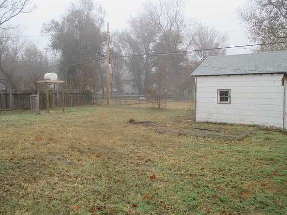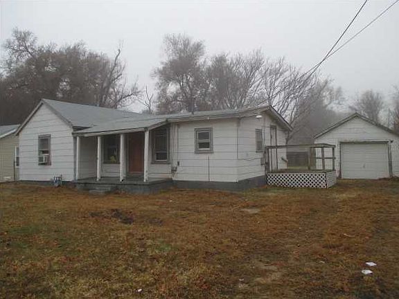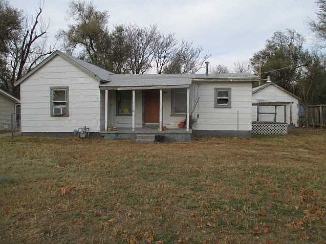 Two bedroom one bath home on a large lot near downtown, central heat and window air units, one car detached garage and covered front porch.