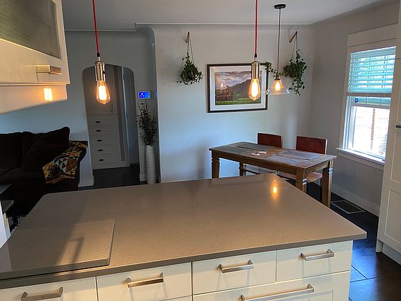 Welcome to this charming farmhouse-style home with thoughtful updates throughout. The main level features natural wood and stone flooring, newer blinds, updated energy efficient windows that bring in excellent natural light, and custom cove lighting that adds modern touch. This floor includes a fully remodeled kitchen complete with gas stove top, oven, dishwasher, refrigerator and custom soft close cabinetry. Two equal sized clean carpeted bedrooms, each with ceiling fans, closets, great natural light and a nicely tiled full bathroom. Main living room includes a mini-split cooling system, central forced heating, an ecobee thermostat, a top of the line ADT security monitoring system, and a considerable sized mud room in the entry way.