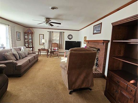 This charming Brick Ranch offers 3 bedrooms and 2 full baths. Separate Dining room has built in shelving. Open kitchen offers a breakfast nook area along with built-in shelves and hardwood cabinets. Enclosed porch connects to 2 car attached garage and laundry/Storage room. Level backyard area. This property also offers an adjacent fenced in 6-Bay Brick garage/storage space/office area along with a separate driveway. Total property acreage is +/- 3.20 acres.