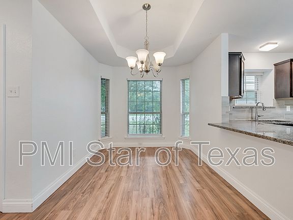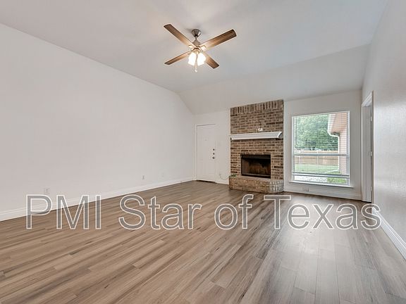Engage with this bright and charming 3-bedroom, 2-bathroom sanctuary that promises a cozy and comfortable lifestyle. This beautifully maintained home offers 1,714 sq ft of versatile living space, perfect for creating lasting memories. The open-concept kitchen features granite countertops, spacious cabinetry for storage, and a breakfast bar. The large living area has a brick fireplace and a large amount of flexible space perfect for entertaining. The spacious primary bath has a large walk-in shower and dual vanities. The solid surface flooring throughout the house is easy to maintain. Easy access to I-30 and George Bush Turnpike. Refrigerator stays with the house. No washer or dryer is included. Check criteria before applying, application fee is non-refundable. Online application only, no paper application. $150.00 admin fee due upon move in.