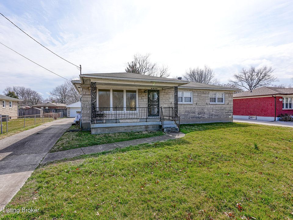 Wonderful opportunity to own this stone ranch home! Many nice features including hardwood floors, a newer spacious kitchen that opens to the dining room, covered front porch, oversized 2 car garage with attached carport, large unfinished basement providing an opportunity to expand the finished square footage or for storage, a parking pad for quests to park and for easy turnaround in the driveway and a flat yard that is partially fenced. Only minutes to interstate 264. Home needs some TLC including the toilet being reinstalled in the half bath. Home to be sold in ''as is'' condition.