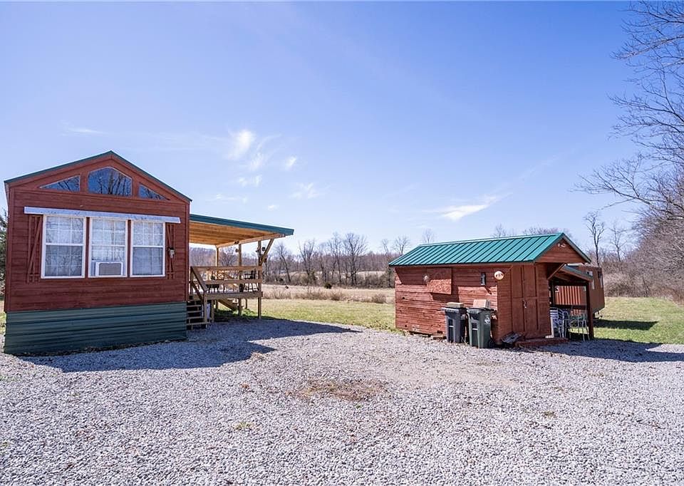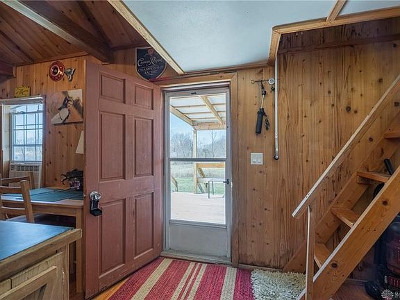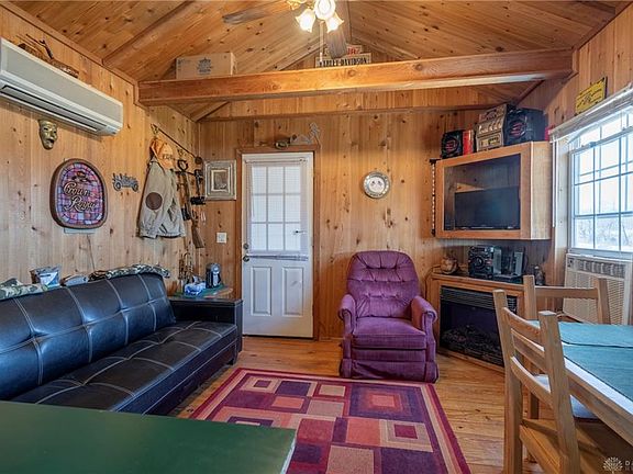 Comfortable and cozy cabin, situated on 5 acres of fields & woods. If you're looking for a place to relax. This is it! The cabin has a bedroom and bath on the main level and a loft bedroom. Living room/kitchen is complete with microwave, range and refrigerator. An extra room could be finished as a laundry room/office, or additional bedroom. Enjoy the country air on a 30 x 12 partially covered deck. The property has a small barn & a singlewide shed for storage. The wooded area is prime for hunting and has a blind and places for tree stands. Property is surrounded by farm fields. New 220 amp service, newer septic system, and an upgraded well pump add to this almost maintenance free cabin.
