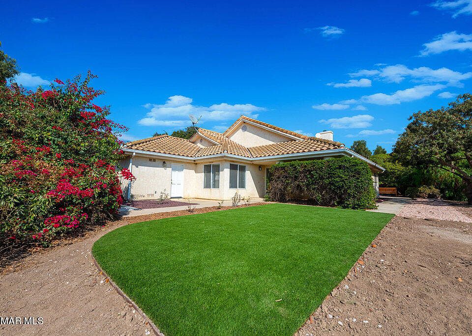 Standing proud on a large lot, this incredible Somis residence offers the laid-back country living you've always dreamed of! Past the stately entry gates, a long driveway bordered by towering trees and vibrant foliage leads to this horse lover's haven. Inside, expansive windows spill brilliant sunlight throughout, filling the heights of the volume ceilings. From the cheerful living room to the chandelier-lit dining room, plush carpeting pairs with neutral tones to create a timeless charm. In the family area adorned with vaulted ceilings, glass sliders, and a built-in entertainment unit, a river rock fireplace radiates warmth as you enjoy game and movie nights. The gourmet kitchen equips you with a full complement of appliances, tons of cabinetry, tiled countertops, and a scenic breakfast nook with outdoor access. After a day in the saddle, retire to the well-sized proportions of the private retreats, including a generous upstairs bedroom adjoined by a walk-in wardrobe and an ensuite. The main-level primary suite highlights vaulted ceilings with a fan, mirrored closets, direct patio access, and a spa-like 5-piece ensuite with a soothing soaking tub. Head outside and host weekend BBQs on the patio as you soak up the fresh breezes. As a premium perk, there's a separate guest house for overnight visitors or extra income. Additional features are a horse stable and an attached 3-car garage. Come grab this rare opportunity before someone else does!