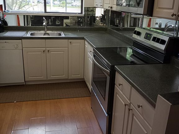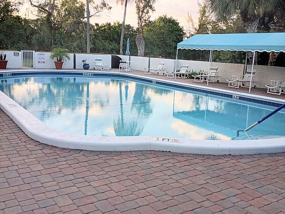 Freshly painted with hardwood floor new stainless steel appliance large closets close to shopping and restaurants ,pool is 20 ft from house gated community with 24 hr security ,gulf coarse and clubhouse 55 plus community ,$100.00 application feew owner pays for water ,cable. Tenant pays electric
