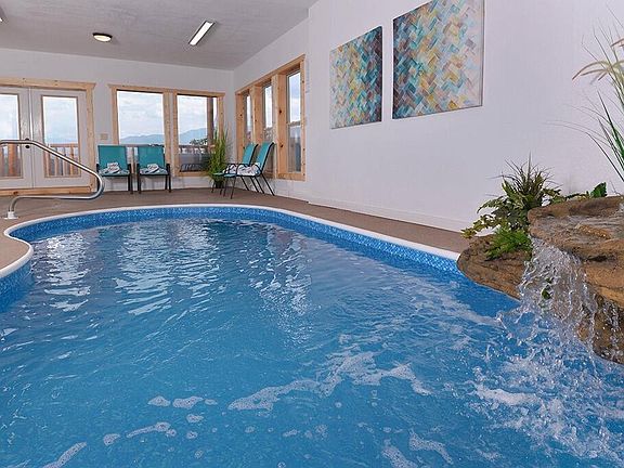 STUNNING can only describe this enormous & luxurious indoor POOL CABIN with BREATHTAKING VIEWS of the Smoky Mountains!! This turn key vacation rental offers a super impressive rental history at 194k for 2021 and on track to exceed that in 2022. This modern yet rustic 3 level, 5 bedroom, 5.5 bath cabin sleeps 20, has multiple decks for privacy and relaxation and boasts an indoor pool with waterfall and theater room w/ surround sound to include a 100 inch projection screen and theater seating. Main level offers open concept living, dining and kitchen with exposed beams and vaulted ceilings, floor to ceiling stacked stone gas fireplace, tongue and groove, wood flooring, and all high end fixtures and finishes. Kitchen features custom cabinets, large island w/ seating and all high end appliance Open loft offers pool table for more entertainment or just relax and enjoy those views! Cabin has 3 decks, large hot tub, grill, level parking and resort amenities to include an outdoor pool and hot tub. Located just a few miles from Dollywood, the Island, Flavortown, and shopping and dining in Pigeon Forge, or take a right and your 5 miles away from downtown Gatlinburg: attractions-Space Needle, Skylift Park and Anakeesta, as well as shopping, dining, and the best attraction, the Great Smoky Mtn National Park! They've thought of everything! A must see!!