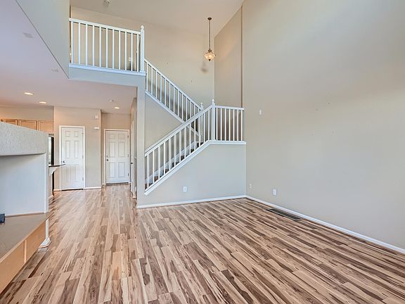 The home features 2 bedrooms, 2.5 bathrooms and attached oversized 2-car garage. Enter the main floor to an abundance of natural light and open floor plan with vaulted 2-story ceilings. Real hardwood floors line the kitchen living room, and bathroom. The kitchen includes updated appliances. Off the kitchen is a private outdoor patio perfect for sunrises. Head upstairs to mountain views - 2 bedrooms, 2 bathrooms, and a laundry room. The owner's suite has two-walk in closets (his/hers), and a 5-piece bathroom. Use one side as a bedroom and the other as a recreation/workout room or study. Wildgrass is a Broomfield best nestled in open space, parks, trails, and two community pools. Owner pays for water, sewer, trash, HOA. Renter pays for electricity, cable, internet