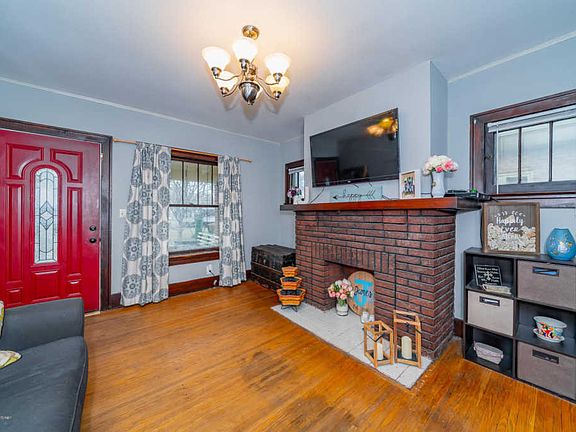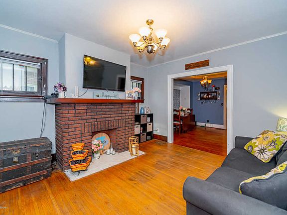 Character and charm! Including hard wood floors, trey ceilings, window seat in dining room, and covered front porch with swing. Bathroom has new vanity and new floors. Decorative fireplace in living room. Brand new central air unit as of April 2019. Attic could easily be used as playroom or third bedroom. Also a great space for added storage. Unfinished basement with partially finished workshop area. Fenced in back yard with deck.