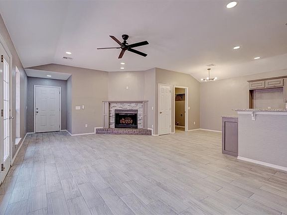 Welcome home to this beautifully renovated zero lot line patio home nestled in a quiet neighborhood within the highly sought-after Moore school district. Boasting 3 bedrooms, 2 bathrooms, and a 2-car garage, this 1395 square foot residence has been meticulously upgraded with modern features and high-quality craftsmanship. Step inside to discover a smart-enabled oasis, where every detail has been carefully curated for optimal comfort and convenience. Enjoy peace of mind with a brand new HVAC system complete with warranty coverage, ensuring year-round comfort. The roof has been replaced with durable Atlas shingles, promising years of protection. As you explore further, you'll appreciate the freshly painted interior and exterior, setting the stage for a bright and inviting atmosphere. New garage door with wifi-accessible opener allows seamless operation directly from your smartphone. Security and technology merge effortlessly with the inclusion of a Blink video doorbell and an Amazon smart wifi thermostat. Illuminate your living spaces with wifi lighting, offering dimmable options and customizable color changes for the perfect ambiance. This home is a haven for both style and functionality, featuring new ceramic tile flooring throughout—no carpet in sight. The kitchen and bathrooms exude elegance with granite countertops. Additional upgrades include a new gas water heater, a ventless/remote-controlled fireplace for cozy nights in, and a newly installed french drain outside to enhance drainage and landscaping. Don't miss the opportunity to call this move-in ready property yours. Schedule a showing today and experience hassle-free, modern living in a prime location!