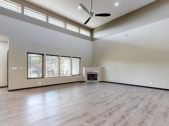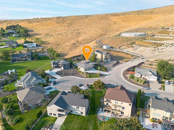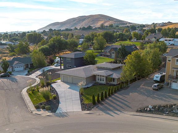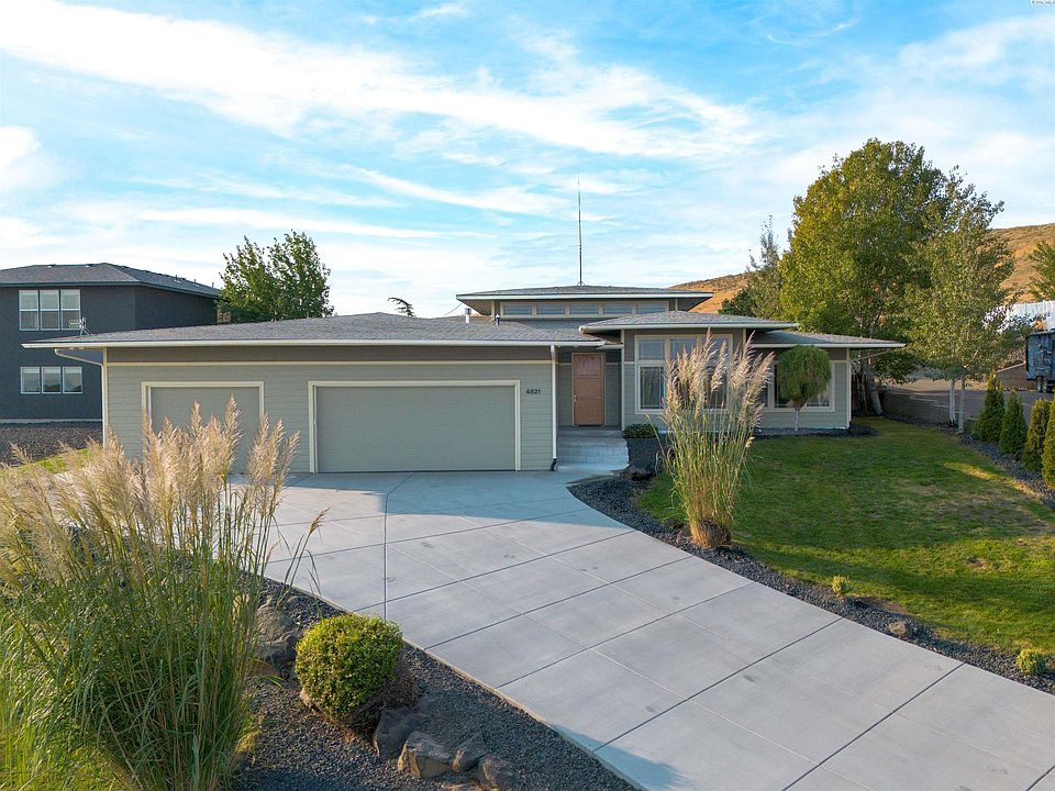 MLS# 287528 Experience bold, modern living in this one-of-a-kind 5 BD 3 BA rambler in the sought-after Candy Mountain Estates of West Richland. Set on an impressive .45-acre corner lot, this home delivers style, space, and sophistication at every turn. Inside, the expansive great room makes a dramatic statement with soaring 16-foot ceilings, transom windows, a striking corner gas fireplace, and LVP flooring throughout. The industrial-modern design is elevated with black-stained maple trim and doors, paired with contemporary light fixtures for a cohesive, designer look. The gourmet kitchen is a true showpiece, featuring professional series stainless steel appliances, modern counters and backsplash, undercabinet lighting, and a large island perfect for gathering. A corner pantry and appliance/bread nook keep everything organized, while the adjacent formal dining room offers a built-in buffet shelf for added flair. Retreat to the luxurious primary suite, complete with its own cozy fireplace, dual walk-in closets, and a spa-like bath. Here you’ll find a dual-sink vanity with vessel sinks and slate/tile counters, a walk-in slate shower with Travertine flooring, and a separate soaking tub for ultimate relaxation. Secondary bedrooms are impressively spacious, each with its own walk-in closet. Step outside to enjoy a fully fenced backyard designed for entertaining, with a covered patio, firepit area, garden space, and a hot tub that stays. The oversized 3+ car garage (1,240 sq ft) is heated and cooled with a mini-split system, making it perfect for hobbies, projects, or extra storage. Industrial edge meets comfortable everyday living in this exceptional home—don’t miss your chance to make it yours.